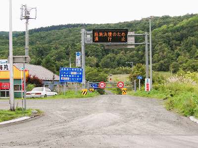 道道610号占冠穂別線 北側 その一お知らせ道道610号占冠穂別線は名前の通り、穂別(現むかわ)の富内から、占冠のニニウまでの間の道路で富内側、ニニウ側ともに取り付けの他の道道使うと、穂別と占冠の中心部を繋いでいるのである。 2005年時点でこの道は、急崖の崩れやすい地形を蛇行する鵡川沿いを進むので、頻繁に崖崩れがおこり、不定期に通行止の時期が続くことが多い。道も狭いこともあり、いつも通れるわけでもないので通行する車は多くない。2005年9月25日、北海道観光節(北海道観光大全)の「鬼峠」さんの運転協力により国道274号北側のレポート化が実現した。 国道274号より南側のレポートはこちら。 道道610号 占冠穂別線 南側 その1へ 道道610号 占冠穂別線 南側 その2へ 国道274号通称樹海ロードの夕張と日高の中間にむかわ町(旧穂別町)福山という集落がある。福山といってもピンと来ない方は、シェルのガソリンスタンドがある地点ね(2005年現在)。 ここの青看板、十字路を示しているが、実際は鍵型の十字路で占冠方面と富内方面では実際は50mくらい離れている(1)。 交差点を過ぎたところに、大きなトイレ付き駐車場がある(2)。恐らく国道274号通称樹海ロードが開通した際に書かれたであろう「国道二七四号交通案内図」がある(3)(素敵な作品だが残念ながら現在撤去)。 このとき福山から富内方面は、路肩決壊のため通行止となっていた(4)。最近通行止になったわけでは無く以前から暫くの間通行止が続いている。