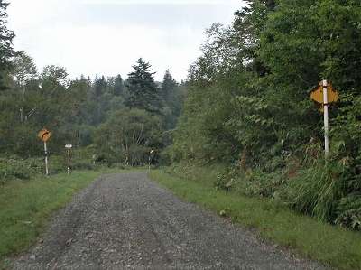 トンネルの上は楽園だよ 国道273号浮島峠旧道お知らせ国道273号線は帯広を起点として三国峠、大雪ダム、層雲峡、上川を通り、浮島峠、滝上を経てオホーツクの紋別までの途中国道39号と333号と重複区間も含んだ北海道の南北を結ぶ道である。 今回紹介する浮島峠は、昭和59年に新道の浮島トンネルが開通したことによって、峠を通る時間が大幅に短縮さ、また冬期通行止でもあった道は通年通行が可能となった。これによって砂利道の上川側はポンルベシベ支川に沿って分水嶺を超え、滝上側はヘアピンで下る峠の旧道区間を走る車は殆どいなくなった。 ![]() この道は秘境浮島湿原に通じる道なのである。 2002晩夏、上川側から訪問した。 国道273号と分岐して舗装され快適な山道も厳しくなる。2キロ程走るとトンネルが見えてくる手前に右に分岐する旧道入口がある(1)。カーブもきつくない砂利道で(2)、さすが国道の旧道という感じである(3)。