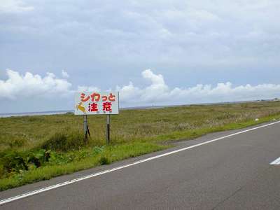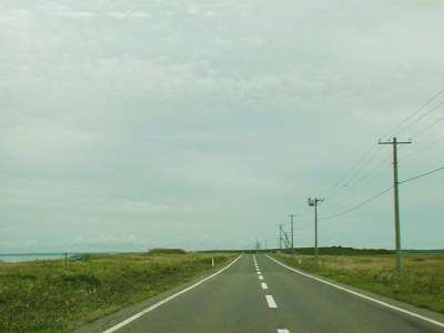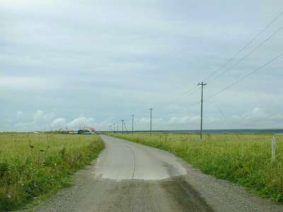 何故、このような辺鄙な道が舗装されているのか?。 冷戦時代、国防上根室湾に面したこの砂州が重要だったのか?。戦車、中長距離砲の台座でも置くためなのか?。なんて考えていたのだが、調べてみると昭和47年冬、流氷によって砂嘴が切断され、その災害復旧工事で護岸を兼ねたコンクリート道路を建設したとのことである。 路面★☆☆☆☆ 景色★★★☆☆ 最果て度★★★★★ 2003年9月中旬訪問 |