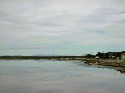(5)の分岐まで戻り、左側(東)の道を行く。この道は砂嘴の先端まで行くことが出来る。