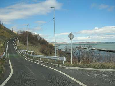 思わず立ちとまった苫多海岸線の道 お知らせ「苫多」はアイヌ語のトマタロ(エンゴサクを掘る場所)から名づけられた。現在のJR、上尾幌、尾幌、門静のエリアが旧苫多村にあたる。現在は厚岸町の一部の海岸線この地名が残る。かつて海岸線は砂浜であったが、侵食により昔と今では海岸線の形が異なり、漁業形態も変わった。この影響によって、海岸線の住人の転居も多かったようだ。 苫多海岸は、厚岸道立自然公園の景勝地であるが、紹介しているガイドは無いに等しい。ってことで、どんな場所なのか走ってみた。 尾幌(沖万別)側から走行した(1)。2車線道路に1.5車線の分岐(2)が現れ曲がる(2車線の道をまっすぐ行き過ぎると農家に突き当たって道は終わる)。 (2)の白い看板は、一般の人はほっき、つぶ等を採っちゃダメ、みたいなことが書いてある。