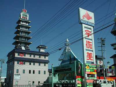 天守閣風ではなく五重塔風な特色の有るネオンサイン。夜は壮観でした。