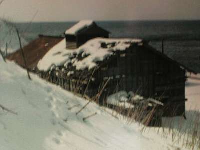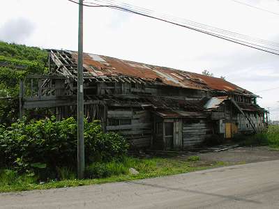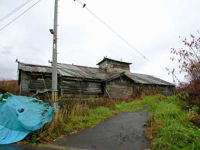 旧木村番屋 はまます郷土資料館に雪景色の番屋の写真があり、その存在を知った。明治20年頃の建築。かれこれ無人となって長いようで、崩壊も近い感じであったが重厚感のある威圧感も感じる建物だった。。現在解体済み。2004年10月撮影