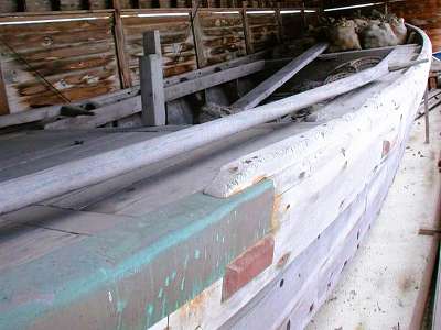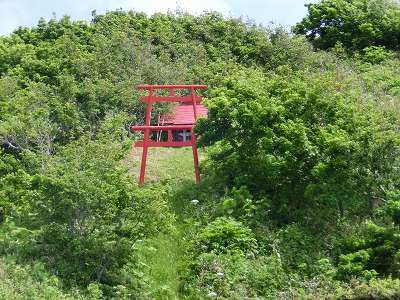 船倉の奥に稲神社 船倉の黄色の部分は船首