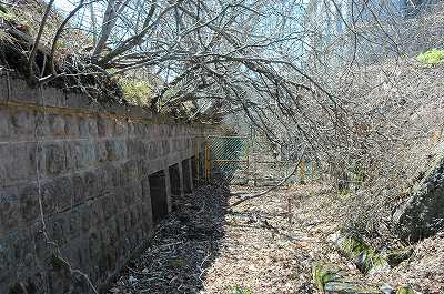 千畳敷砲台 その3 砲台などお知らせその2で紹介した場所から少しだけ北側へ歩くと、そこにも砲台の跡がある(1)。 (1) (2)(1)の左側が(2)、右側が(4)。 (2)の中央の階段の先にも砲台があった模様だが、そこを利用して海上保安庁?JR?(失念)の建物が建てられている(2021年には解体済み)。(2)の写真の左側の藪になっているところを写したものが(3)。この奥にも要塞の跡があるようだが、荒れ果ててしまっている (3) (4)(4)の写真中央には地下砲側庫、その奥には、階段が続く(5)。 (5)階段を上るとそこは観測所跡(6、7)となっていて景色が良い。 (7)は南側を見たもので、右側の山の中に、一連の千畳敷砲台群が眠っているのである。 (6) (7)観測所を後にし、また少し北側に進むと道は下り坂、そして(8)のような雍壁が現れる。 坂を下ると広場になっており、そこから見返したものが(9)。 (8) (9)(9)の右側の写真では黒く潰れてしまっているが、そこは(10)のように部屋の入口がある。 (10) (11)判りにくいが、レンガの上がコンクリ、その上が石組みに仕様されていた。 内部は広い。 (12)はこの広場付近の遺構。 (12)南側から千畳敷砲台群を見る場合は下から写真を追っていって、その3,2,1と見てください。 |