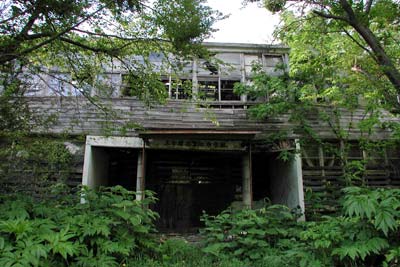 早川の中心の交差点部に若葉小中学校があり、朽ちるがままで無残な姿となっていた。 2006年4月訪問時は、更に荒廃が進んでいた。これは2004年に積丹の大森大橋壊した巨大台風18号によると思わる。 そのまま22年放置されて2010年に解体された模様。